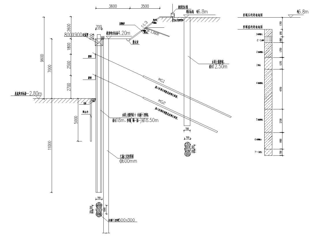 圖:根據(jù)現(xiàn)場實(shí)際條件圍護(hù)方案比選確定SMW工法樁+預(yù)應(yīng)力錨索方案