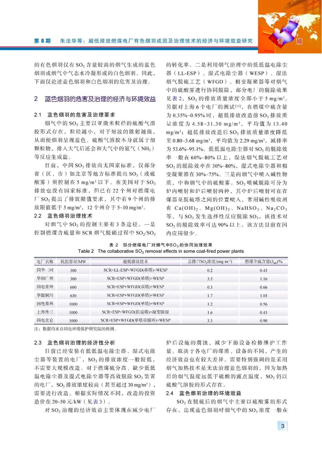 (2)燃煤電廠超低排放后,普遍存在的是白色煙羽,有少數(shù)燃用中、高硫煤的電廠會出現(xiàn)藍色煙羽。白色煙羽主要是存在視覺影響,本身對環(huán)境影響不大,治理能收獲的環(huán)境效益較小;藍色煙羽中硫酸霧濃度較高,應進行治理。