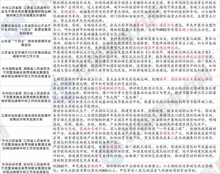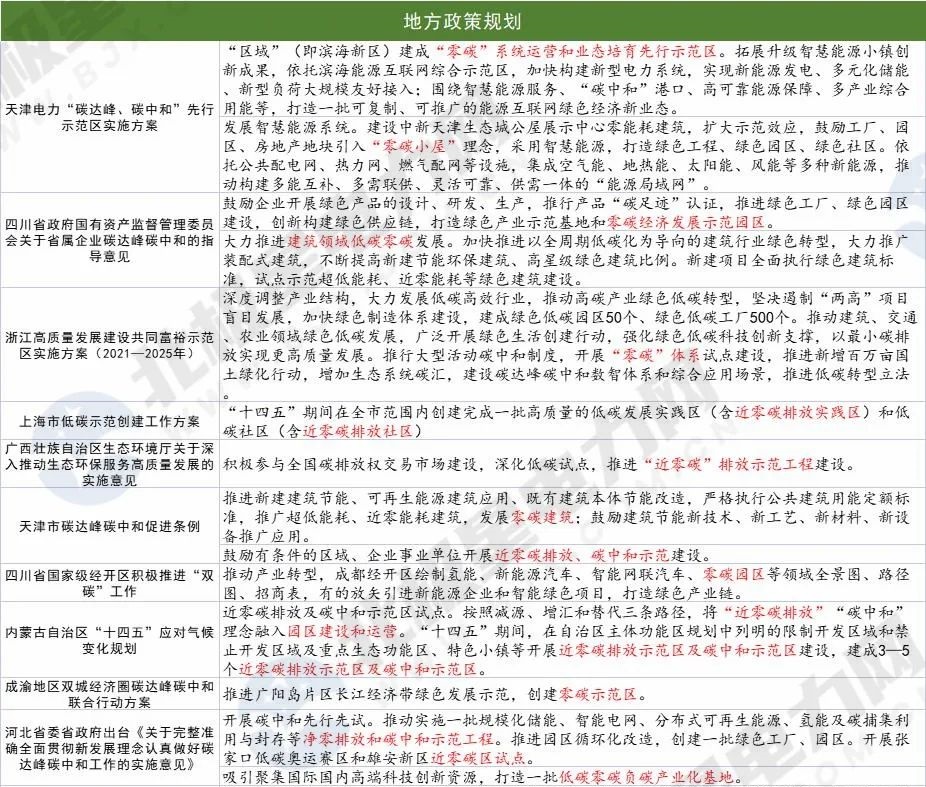 隨后,全國各地開始推進近零碳排放示范區(qū)、低碳城、低碳園區(qū)、低碳社區(qū)等的建設(shè)。